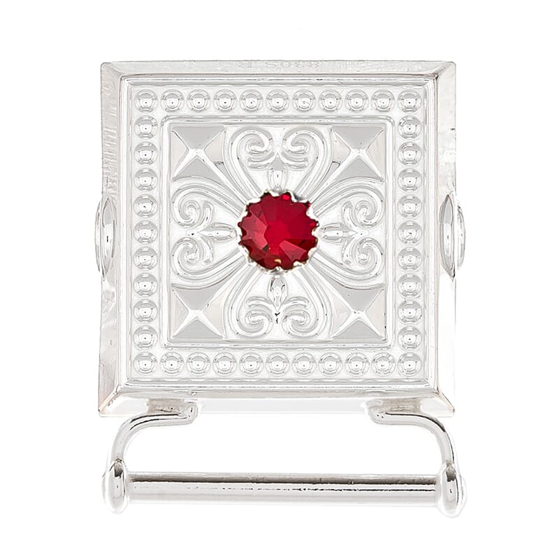 Veskestøl, kvit med raud stein, 26,5mm opning, øsken